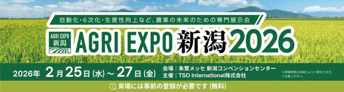 当社も出展していますAGRI EXPO 新潟は、農業の課題解決と発展促進を目的とする北陸地域初「農業の総合展」で、日本有数の農業地域である新潟県で初開催されています。